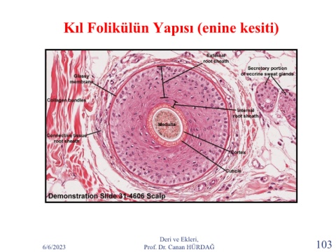 Kıl Folikülün Yapısı (enine kesiti) Deri ve Ekleri, 6/6/2023 Prof. Dr. Canan HÜRDAĞ 103