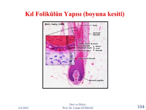Kıl Folikülün Yapısı (boyuna kesiti) Deri ve Ekleri, 6/6/2023 Prof. Dr. Canan HÜRDAĞ 104