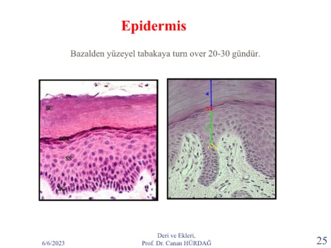 Epidermis Bazalden yüzeyel tabakaya turn over 20-30 gündür. Deri ve Ekleri, 6/6/2023 Prof. Dr. Canan HÜRDAĞ 25