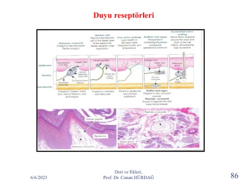 Duyu reseptörleri Deri ve Ekleri, 6/6/2023 Prof. Dr. Canan HÜRDAĞ 86