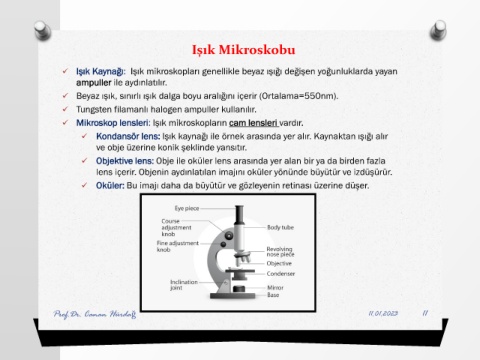 ✓ Işık Kaynağı: Işık mikroskopları genellikle beyaz ışığı değişen yoğunluklarda yayan