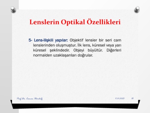 5- Lens-ilişkili yapılar: Objektif lensler bir seri cam