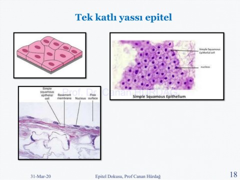 Tek katlı yassı epitel Prof. Dr. Canan HURDAG 18 31-Mar-20 Epitel Dokusu, Prof Canan Hürdağ