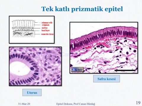 Tek katlı prizmatik epitel Prof. Dr. Canan HURDAG Safra kesesi Uterus 19 31-Mar-20 Epitel Dokusu, Prof Canan Hürdağ