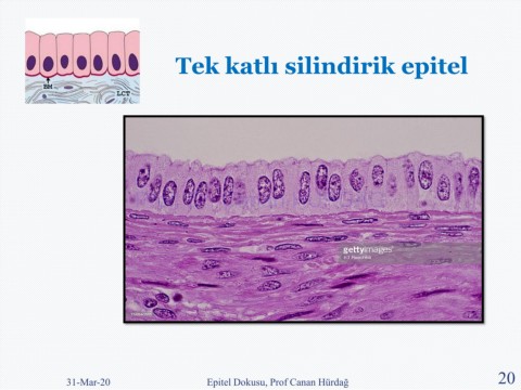 Tek katlı silindirik epitel Prof. Dr. Canan HURDAG 20 31-Mar-20 Epitel Dokusu, Prof Canan Hürdağ