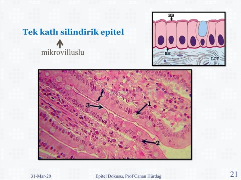 Tek katlı silindirik epitel mikrovilluslu Prof. Dr. Canan HURDAG 21 31-Mar-20 Epitel Dokusu, Prof Canan Hürdağ