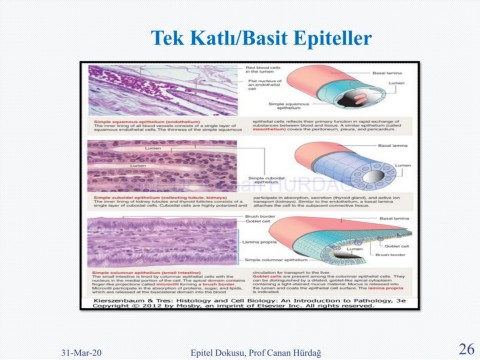 Tek Katlı/Basit Epiteller Prof. Dr. Canan HURDAG 26 31-Mar-20 Epitel Dokusu, Prof Canan Hürdağ