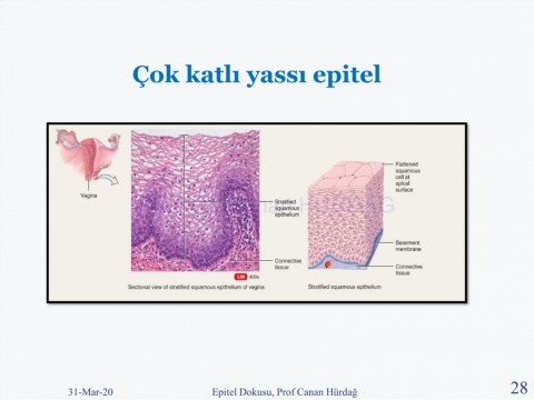 Çok katlı yassı epitel Prof. Dr. Canan HURDAG 28 31-Mar-20 Epitel Dokusu, Prof Canan Hürdağ