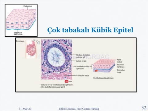 Çok tabakalı Kübik Epitel Prof. Dr. Canan HURDAG 32 31-Mar-20 Epitel Dokusu, Prof Canan Hürdağ