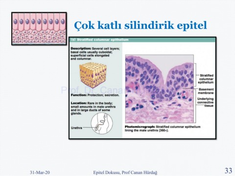 Çok katlı silindirik epitel Prof. Dr. Canan HURDAG 33 31-Mar-20 Epitel Dokusu, Prof Canan Hürdağ