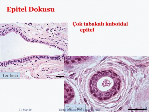 Epitel Dokusu Çok tabakalı kuboidal epitel Prof. Dr. Canan HURDAG Ter bezi Ter bezi 34 31-Mar-20 Epitel Dokusu, Prof Canan Hürdağ