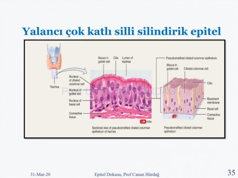 Yalancı çok katlı silli silindirik epitel Prof. Dr. Canan HURDAG 35 31-Mar-20 Epitel Dokusu, Prof Canan Hürdağ