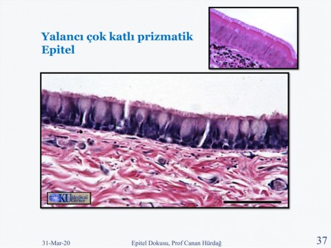 Yalancı çok katlı prizmatik Epitel Prof. Dr. Canan HURDAG 37 31-Mar-20 Epitel Dokusu, Prof Canan Hürdağ