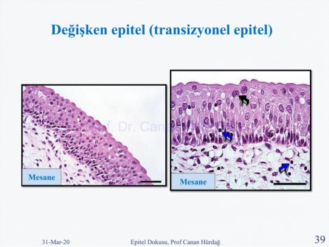 Değişken epitel (transizyonel epitel) Prof. Dr. Canan HURDAG Mesane Mesane 39 31-Mar-20 Epitel Dokusu, Prof Canan Hürdağ
