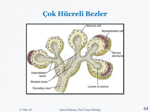 Çok Hücreli Bezler Prof. Dr. Canan HURDAG 44 31-Mar-20 Epitel Dokusu, Prof Canan Hürdağ