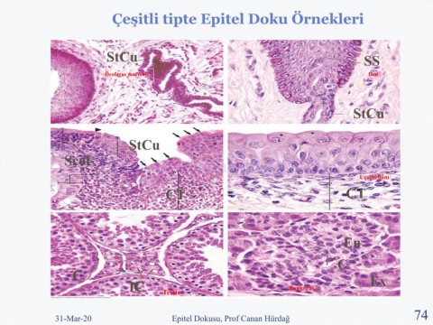 Çeşitli tipte Epitel Doku Örnekleri StCu SS Özofagus maymun Deri StCu StCu Scol Prof. Dr. Canan HURDAG Urothelium CT CT En C C C IC Testis Pankreas Ex 74 31-Mar-20 Epitel Dokusu, Prof Canan Hürdağ