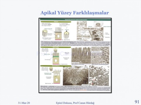Apikal Yüzey Farklılaşmalar Prof. Dr. Canan HURDAG 91 31-Mar-20 Epitel Dokusu, Prof Canan Hürdağ