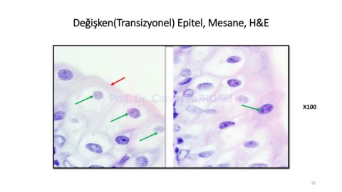 Değişken(Transizyonel) Epitel, Mesane, H&E Prof. Dr. Canan HURDAG X100 21
