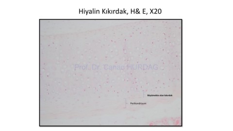 Hiyalin Kıkırdak, H& E, X20 Prof. Dr. Canan HURDAG Büyümekte olan kıkırdak Perikondriyum