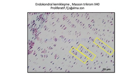 Endokondral kemikleşme , Masson trikrom X40 Proliferatif /Çoğalma zon Prof. Dr. Canan HURDAG