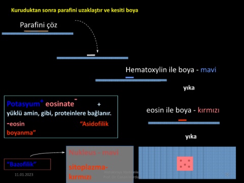 Kuruduktan sonra parafini uzaklaştır ve kesiti boya