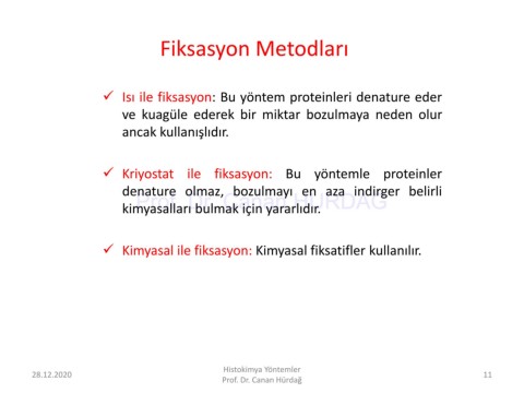 ✓ Isı ile fiksasyon: Bu yöntem proteinleri denature eder