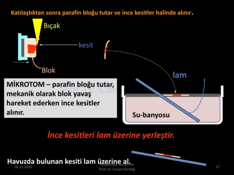 İnce kesitleri lam üzerine yerleştir.