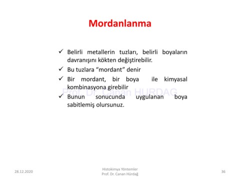 ✓ Bu tuzlara “mordant” denir