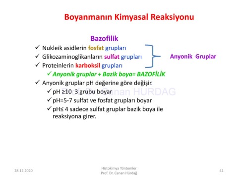 ✓Anyonik gruplar + Bazik boya= BAZOFİLİK