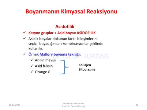✓ Asidik boyalar dokunun farklı bileşimlerini