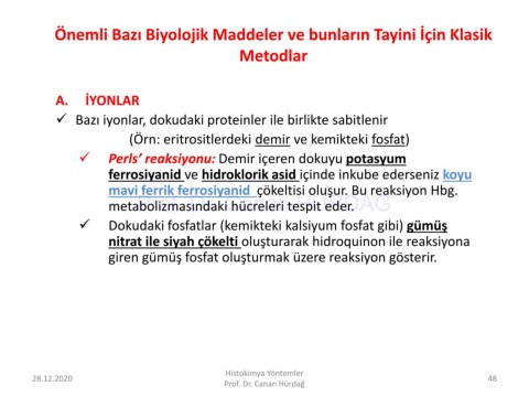 ✓ Bazı iyonlar, dokudaki proteinler ile birlikte sabitlenir