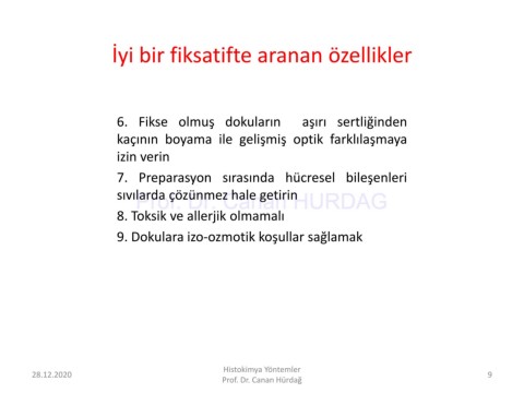 İyi bir fiksatifte aranan özellikler