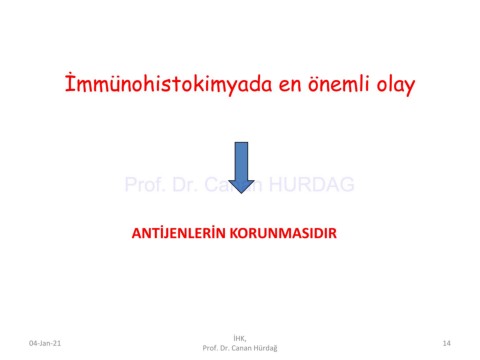 İmmünohistokimyada en önemli olay Prof. Dr. Canan HURDAG ANTİJENLERİN KORUNMASIDIR İHK, 04-Jan-21 14 Prof. Dr. Canan Hürdağ