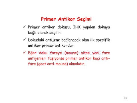 ✓ Primer antikor dokusu, İHK yapılan dokuya