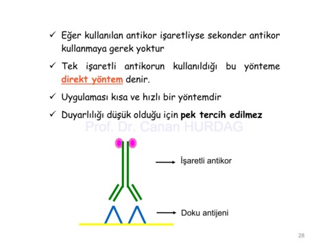 ✓ Eğer kullanılan antikor işaretliyse sekonder antikor
