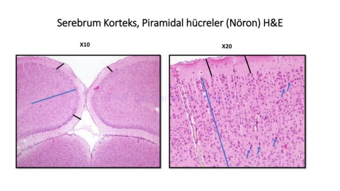 Serebrum Korteks, Piramidal hücreler (Nöron) H&E X10 X20 Prof. Dr. Canan HURDAG