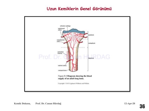 Uzun Kemiklerin Genel Görünümü Prof. Dr. Canan HURDAG Kemik Dokusu, Prof. Dr. Canan Hürdağ 12-Apr-20 36