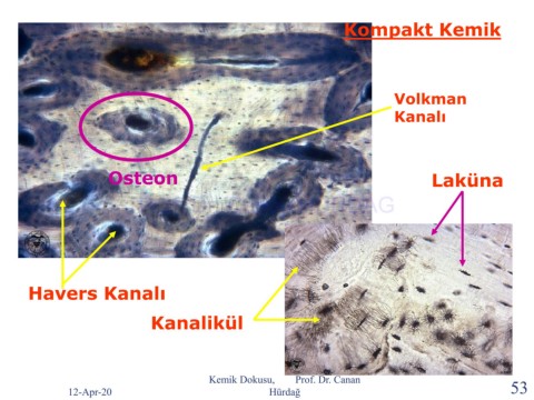 Kompakt Kemik Volkman Kanalı Osteon Laküna Prof. Dr. Canan HURDAG Havers Kanalı Kanalikül Kemik Dokusu, Prof. Dr. Canan 12-Apr-20 Hürdağ 53