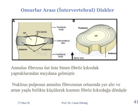 Annulus fibrozus üst üste binen fibröz kıkırdak