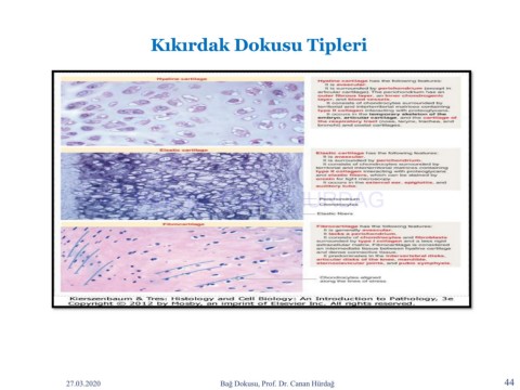 Kıkırdak Dokusu Tipleri Prof. Dr. Canan HURDAG 27.03.2020 Bağ Dokusu, Prof. Dr. Canan Hürdağ 44