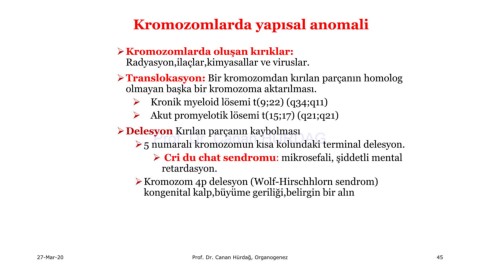 27-Mar-20 Prof. Dr. Canan Hürdağ, Organogenez 45
