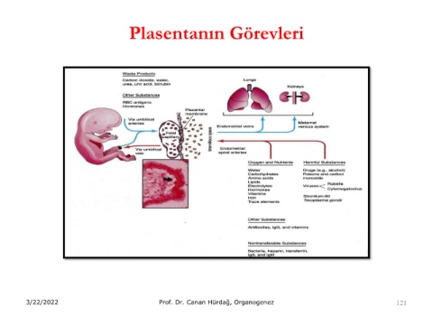 Plasentanın Görevleri 3/22/2022 Prof. Dr. Canan Hürdağ, Organogenez 121