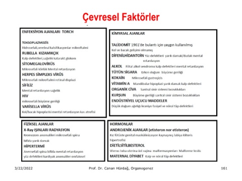 Çevresel Faktörler 3/22/2022 Prof. Dr. Canan Hürdağ, Organogenez 161