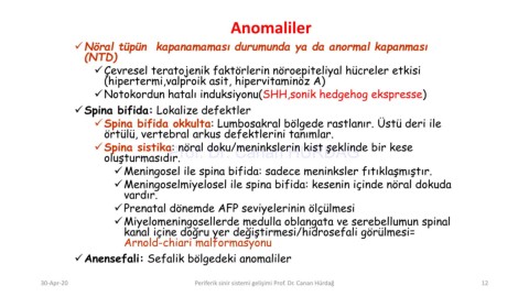 30-Apr-20 Periferik sinir sistemi gelişimi Prof. Dr. Canan Hürdağ 12