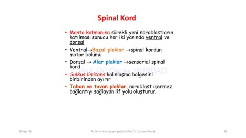 30-Apr-20 Periferik sinir sistemi gelişimi Prof. Dr. Canan Hürdağ 19