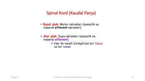 30-Apr-20 Periferik sinir sistemi gelişimi Prof. Dr. Canan Hürdağ 21