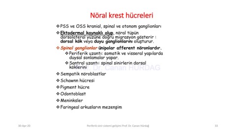 30-Apr-20 Periferik sinir sistemi gelişimi Prof. Dr. Canan Hürdağ 33