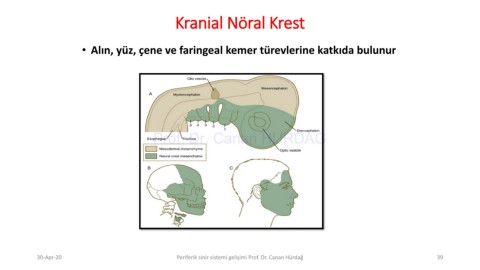 Kranial Nöral Krest • Alın, yüz, çene ve faringeal kemer türevlerine katkıda bulunur Prof. Dr. Canan HURDAG 30-Apr-20 Periferik sinir sistemi gelişimi Prof. Dr. Canan Hürdağ 39