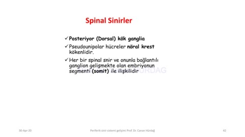 30-Apr-20 Periferik sinir sistemi gelişimi Prof. Dr. Canan Hürdağ 42