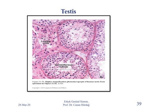 Testis Prof. Dr. Canan HURDAG Erkek Genital Sistem, 28-Mar-20 Prof. Dr. Canan Hürdağ 39